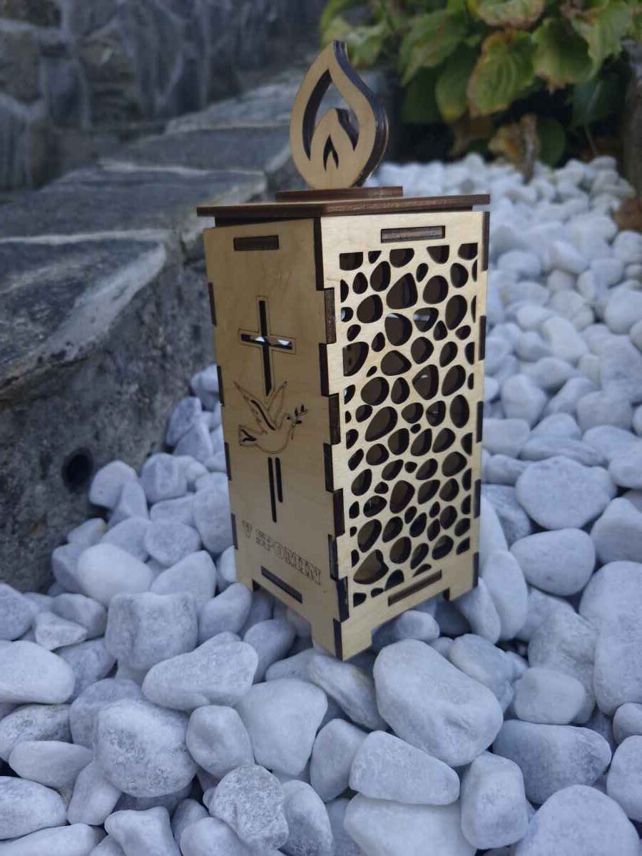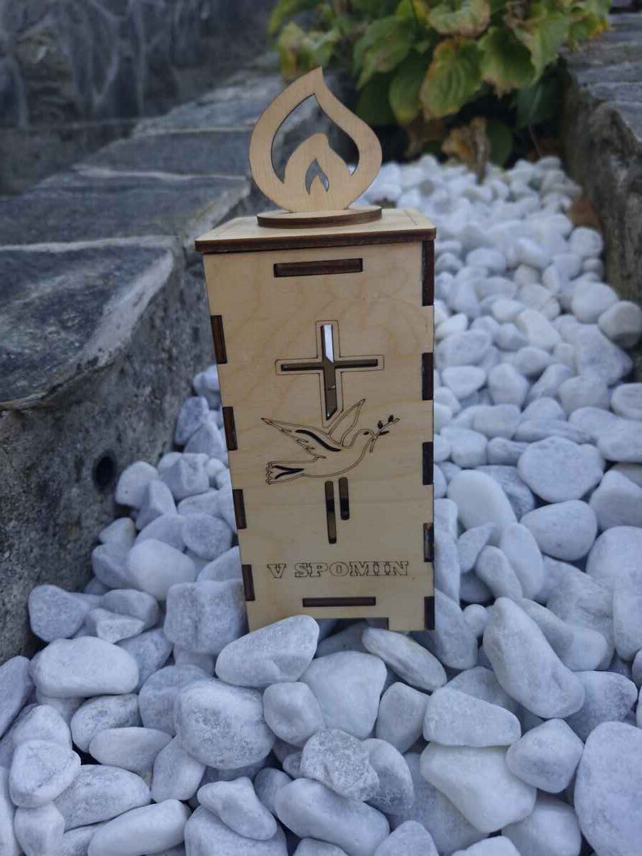 Novo lesena v spomin  je unikatna svečka .  Svečka je narejena iz  lesa breza , lakirana in je  v zunanjih razmerah obstojna do 4 mesece . Svečka je naravna okolju , prijazna in popolnoma razgradljiva . Ohranimo naravo in svojim najbližjim podarimo leseno svečko .